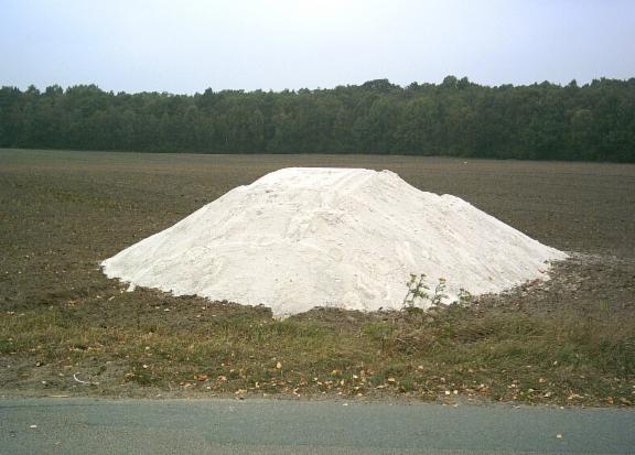 Düngekalk, original Jurakalk, gesiebt, wie er zur Bodenverbesserung auf Feldern eingesetzt wird.